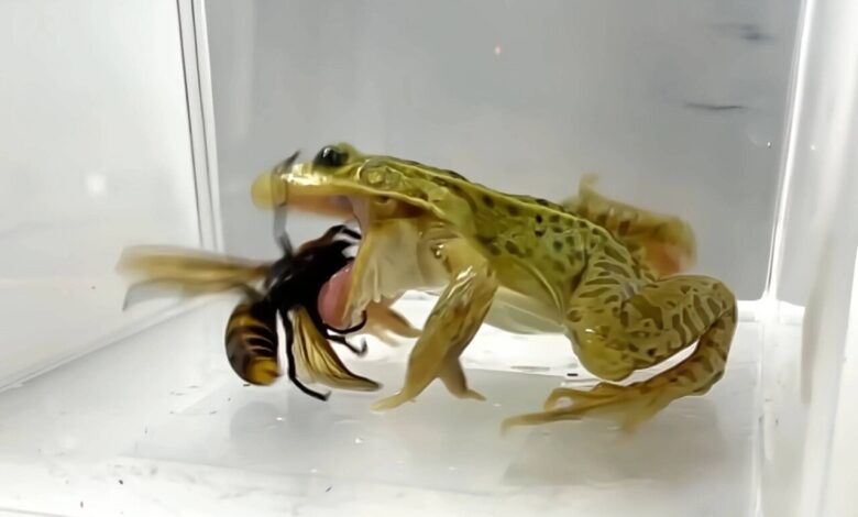 زنبورهای قاتل کابوس جانوران دیگر هستند؛ اما قورباغه‌های بی‌باک برکه آن‌ها را یک لقمه می‌کنند