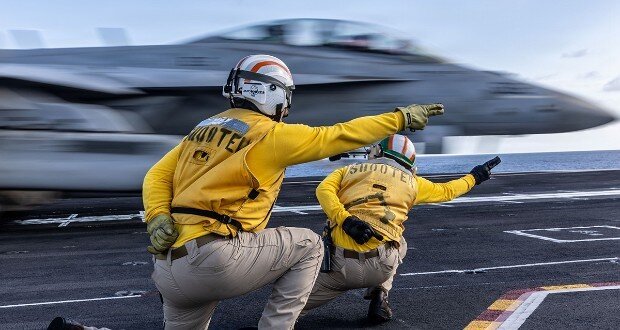 پرواز جنگنده‌ها از قدرتمندترین ناو جنگی جهان